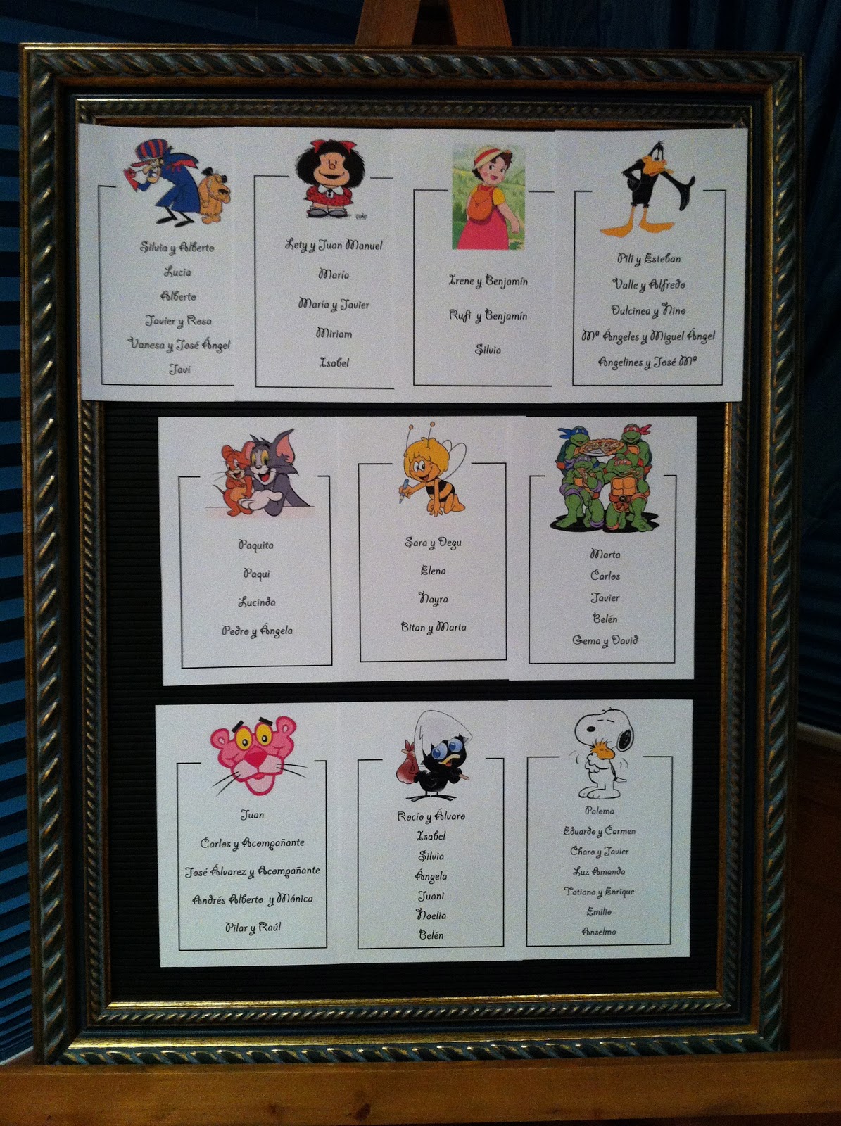 El protocolo de mesas estaba formado por personajes de series de dibujos infantiles, ya que la novia es profesora y quiso hacer un guiño a su profesión durante la cena de su boda.