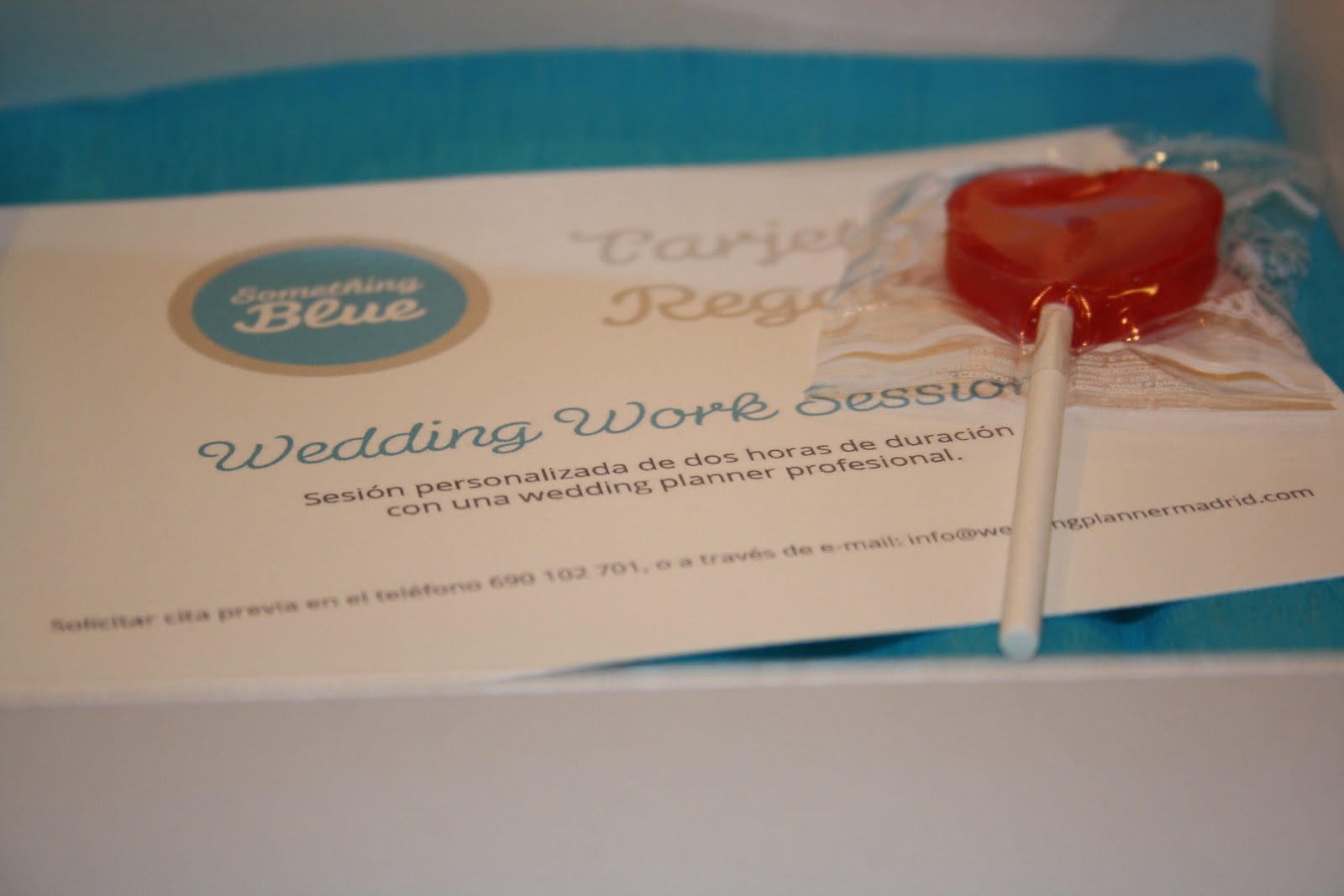 Se trata de una cajita que contiene una Tarjeta Regalo válida por una Wedding Work Session de 2 horas de duración para que los novios tengan asesoramiento profesional con la organización de su boda.