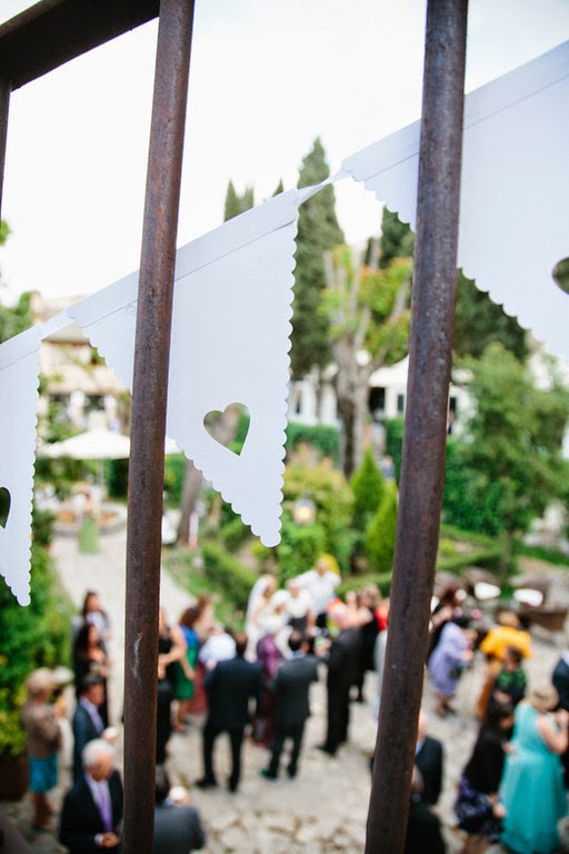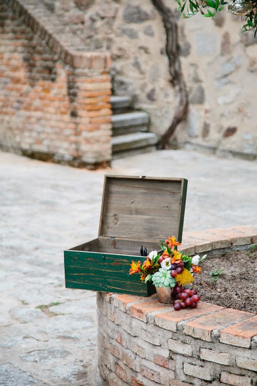 Deb quería una boda muy cuidada, que tuviera un toque muy español (que plasmamos en la temática vinícola del seating plan y los centros de mesa), y con detalles actuales y festivos como farolillos de papel, o los corazones de colores clavados en el césped. Hubo una actuación de un mago durante el cocktail, un guitarrista que puso la música en directo de la celebración, un show de flamenco para dar comienzo a la barra libre, y mil y un más sorpresas para los invitados… ¡e incluso para el novio! Para quien montamos un buffet de aceitunas en la barra libre como regalo de parte de su recién estrenada esposa. Sin más preámbulos os dejo con las imágenes de esta boda, ¡espero que os guste!
